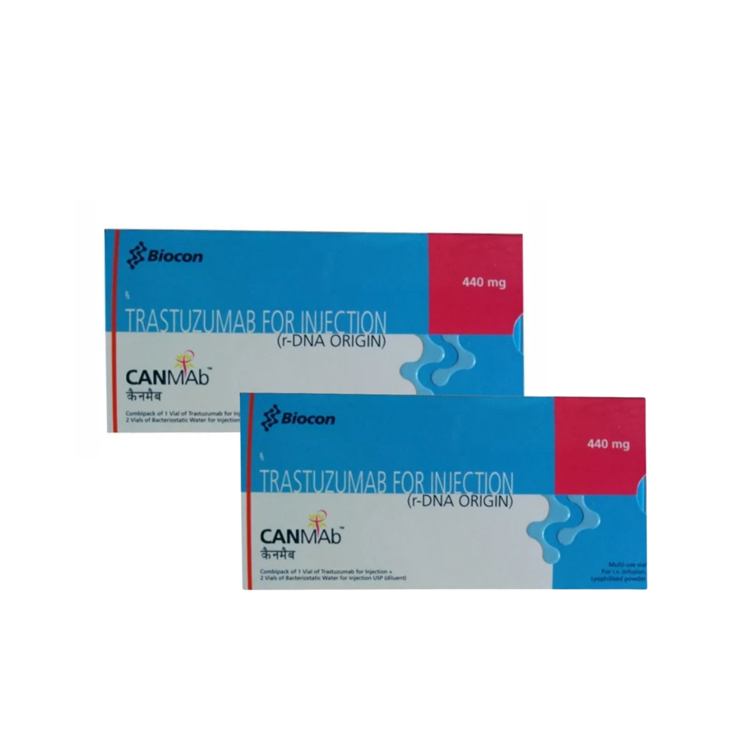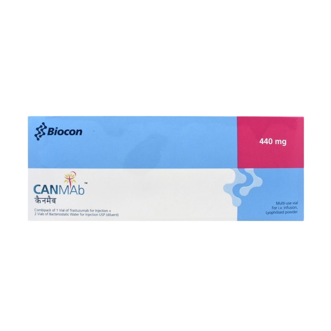 Canmab 440mg Injection is used in the treatment of breast and stomach cancer. It works by killing the cancer cells by inhibiting HER2 (human epidermal growth factor receptor protein).
