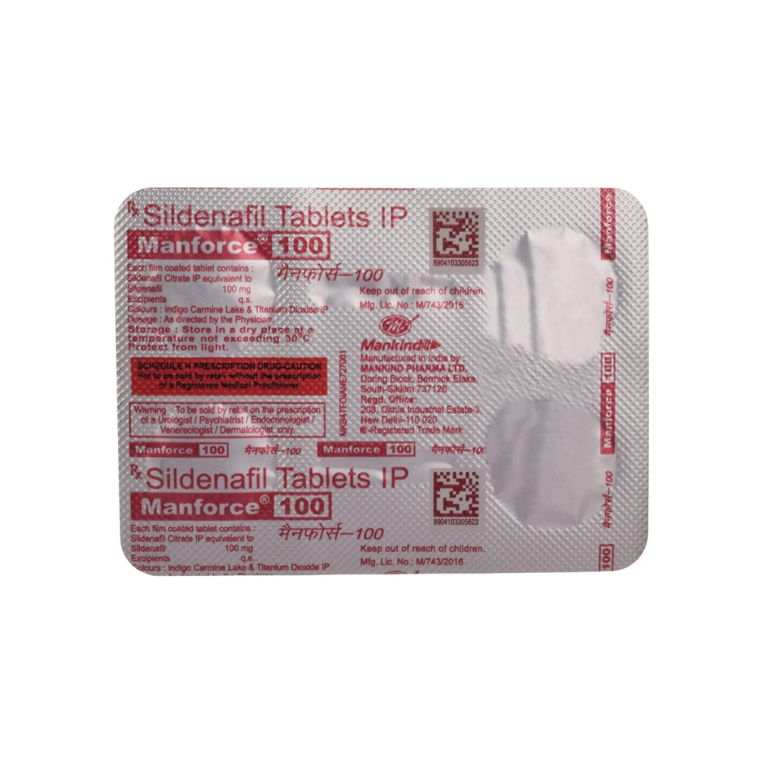 Manforce 100mg Tablet is a prescription medicine used to treat erectile dysfunction (impotence) in men. It works by increasing blood flow to the penis. This helps men to get or maintain an erection. It belongs to a group of medicines known as phosphodiesterase type 5 (PDE 5) inhibitors.